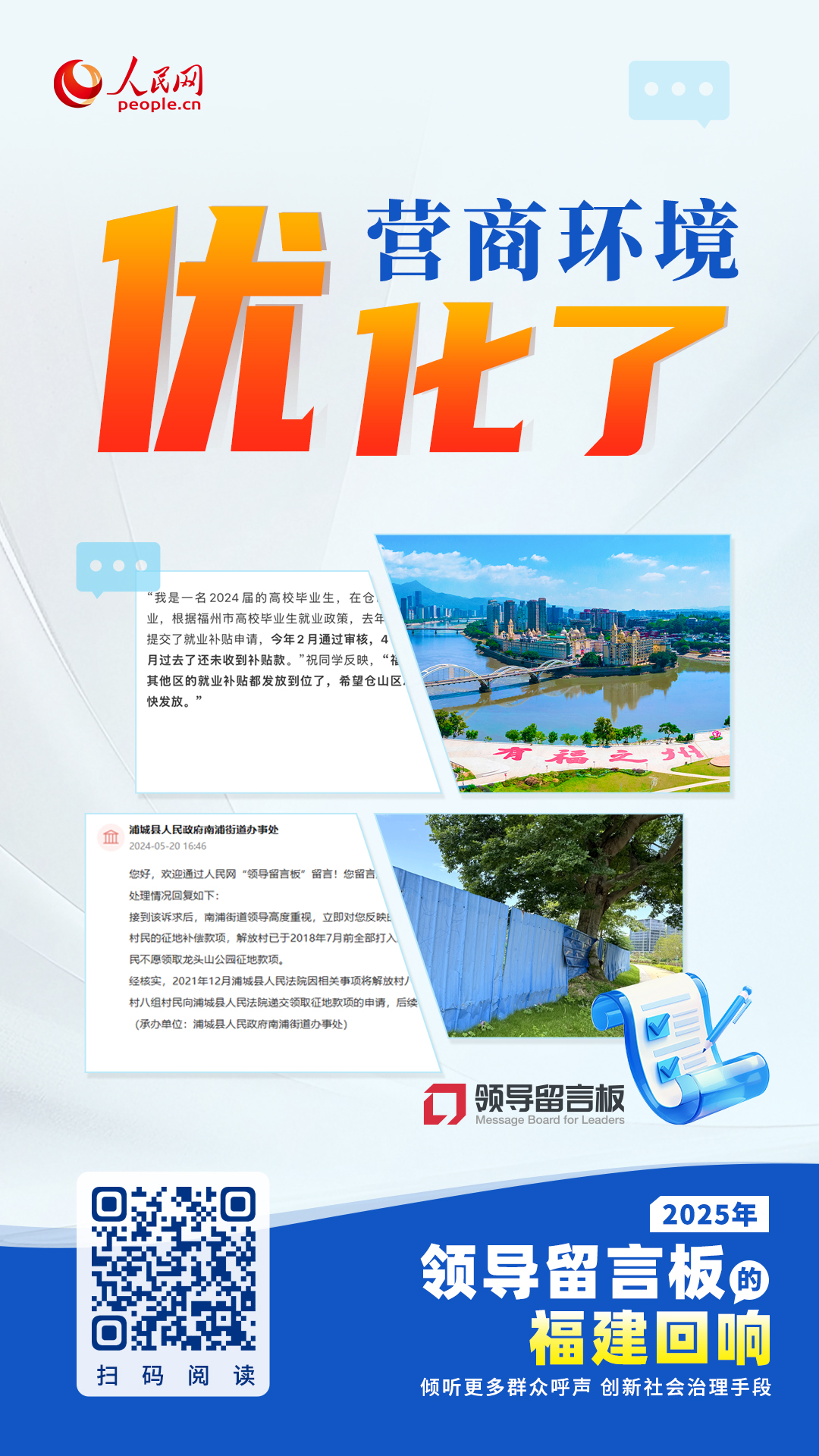 从“网对网”到“心连心”,一件件暖心事见证了推进社会治理的福建力量。线上察民情、线下惠民生,一起聆听2025年“领导留言板”上的福建回响。